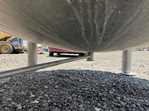 Tank is supported with four 3” schedule 40 stainless steel pipe legs with 6” adjustable pads.