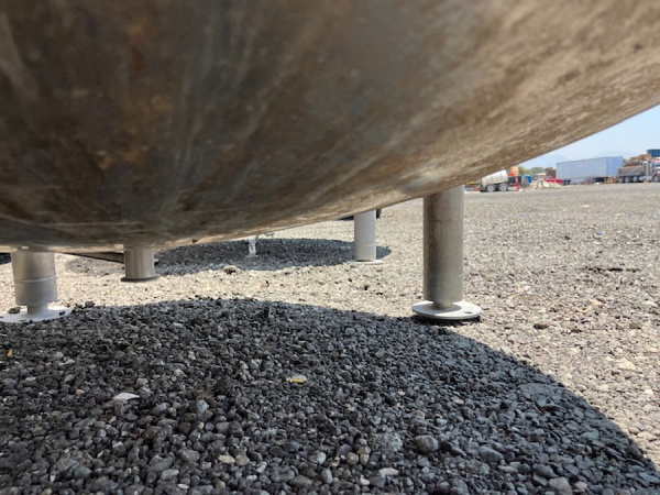 Tank is supported with four 3” schedule 40 stainless steel pipe legs with 6” adjustable pads.