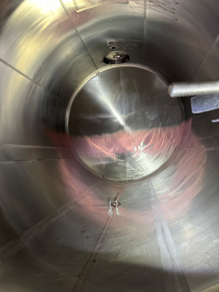 One end of the tank has a 16” X 20” man way with a swing in cover; one 2” sanitary bottom drain fitting; One 2” sanitary fitting 12” up from the bottom and two 1” threaded fittings.